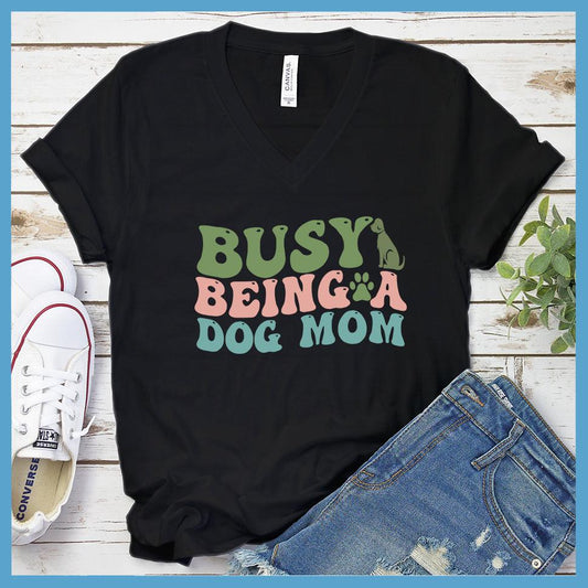 Busy Being A Dog Mom Colored Print V-Neck