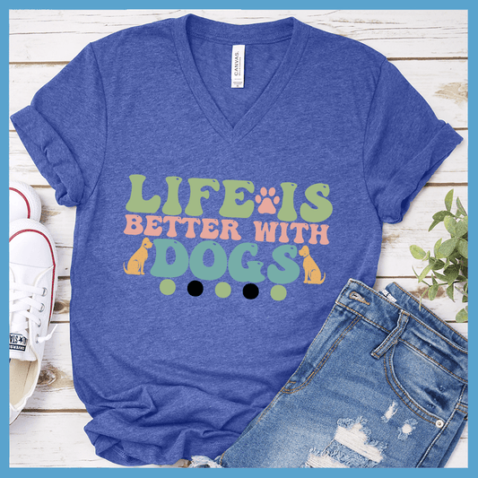 Life Is Better With Dogs Colored Print V-Neck