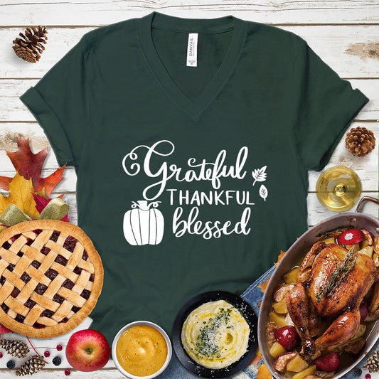 Thankful Grateful & Blessed V-Neck