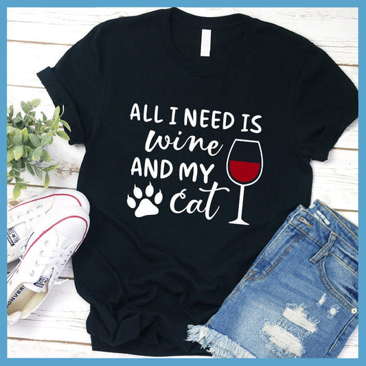 All I Need Is Wine And My Cat Colored Print T-Shirt