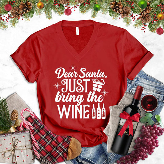 Dear Santa Just Bring The Wine Version 2 V-Neck