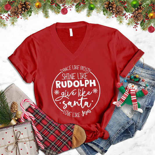 Dance Like Frosty Shine Like Rudolph Give Like Santa Love Like Jesus V-Neck