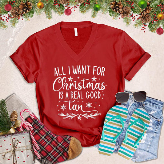 All I Want For Christmas Is A Real Good Tan V-Neck