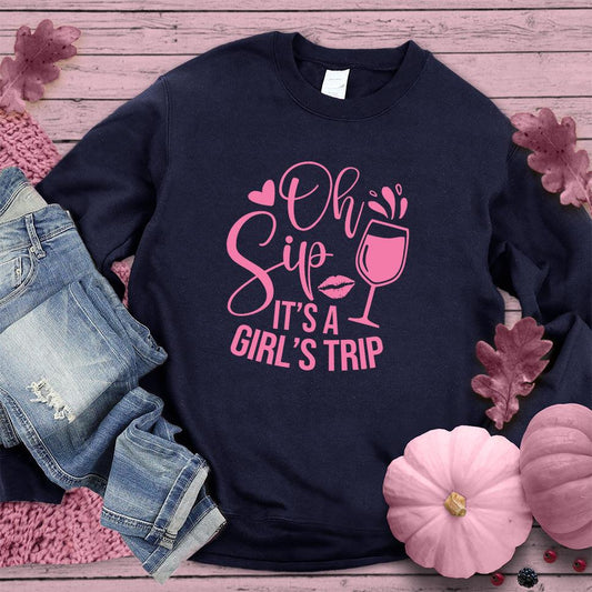 Oh Sip It's A Girl's Trip Sweatshirt Pink Edition