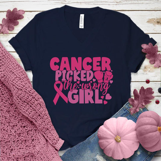 Cancer Picked The Wrong Girl Colored Edition V-Neck