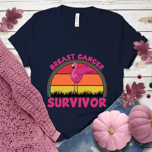 Breast Cancer Survivor Flamingo Colored Edition V-Neck