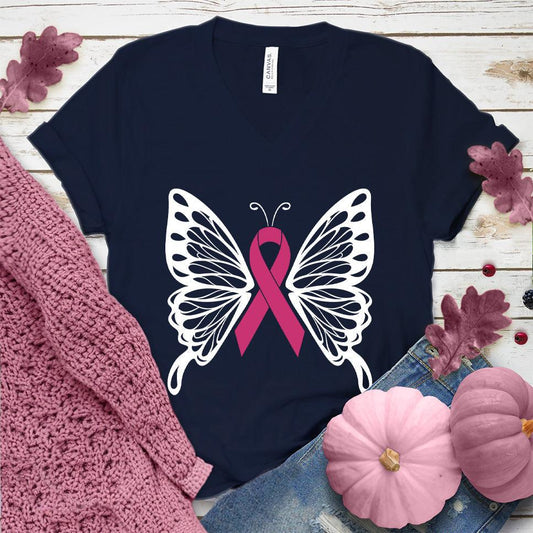 Cancer Ribbon Butterfly Colored Edition V-Neck