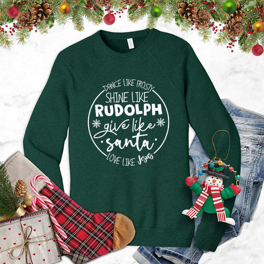 Dance Like Frosty Shine Like Rudolph Give Like Santa Love Like Jesus Sweatshirt