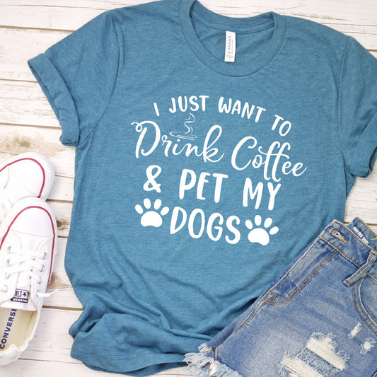 I Just Want To Drink Coffee And Pet My Dogs T-Shirt