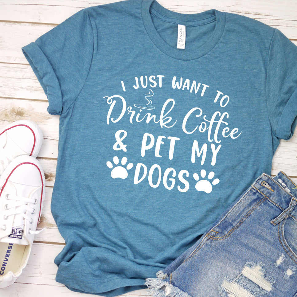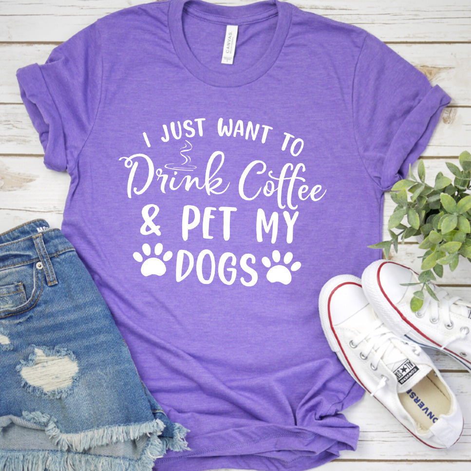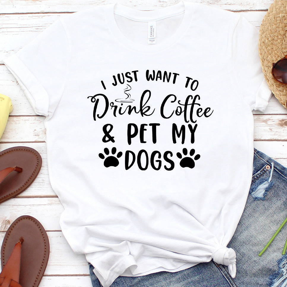 I Just Want To Drink Coffee And Pet My Dogs T-Shirt