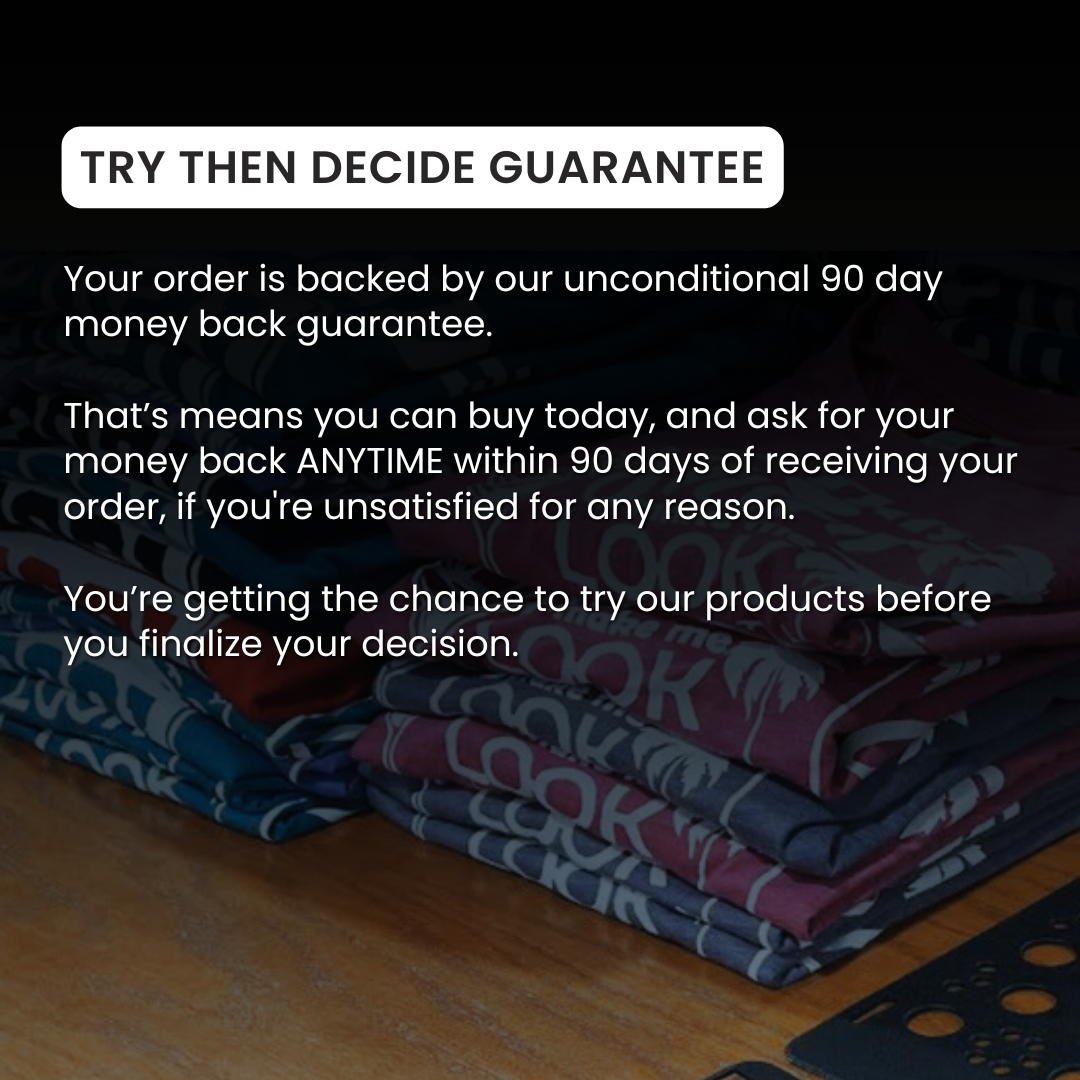 That’s means you can buy today, and ask for your money back ANYTIME within 90 days of receiving your order, if you're unsatisfied for any reason.